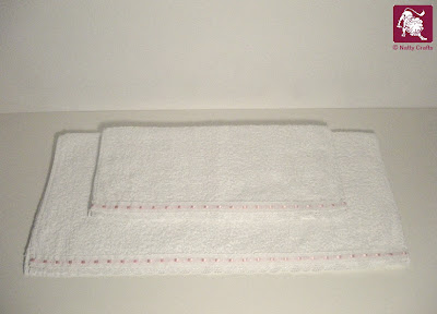 Enquanto não termino o vestido... que preguiça.... decorei estas toalhinhas para mim. Tenciono fazer para toda a família à medida que se comprarem mais conjuntos.